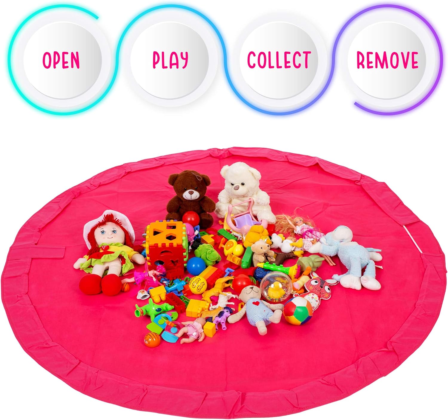 • THE EDNA HOME PLAYMAT AND TOY STORAGE BAG: Very convenient for usage in any room, the EDNA HOME Toy Storage Organizer is a quick-&-easy storage bag of toys. You will not have to worry about the toys spread out all over the floor anymore. Thanks to this toy organizer and storage, all toys will be pulled up together in one move easily. No more picking them up one small handful at a time!